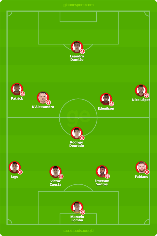 Pendurados: Edenílson, Rodrigo Dourado, Nico López e Brenner